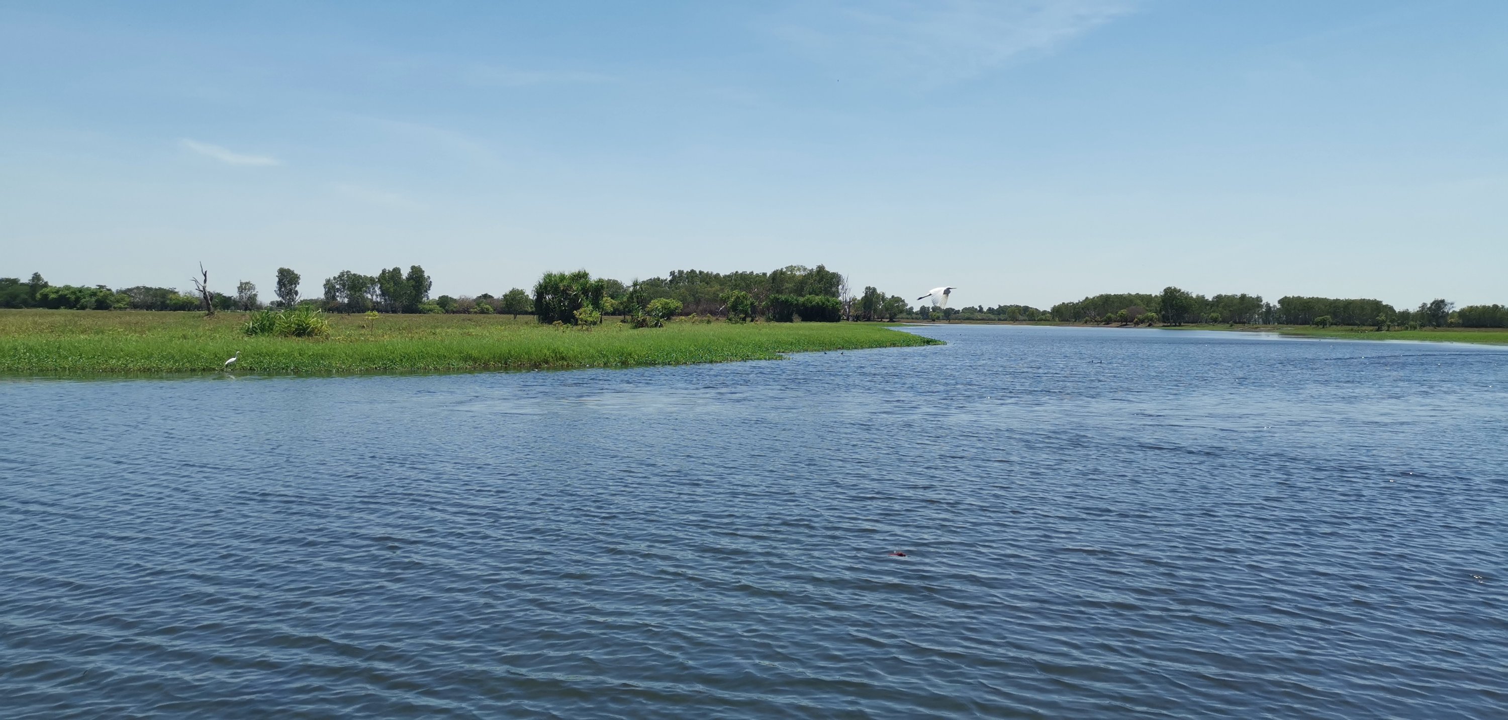 Dann fahren wir den kurzen Weg zur Cooinda Lodge Kakadu und weiter zum Yellow Water wo wir eine Bootsfahrt machen. Unser Fahrer und Guide, Ruben, ist Mitglied des Aborigines Clans dem Yellow Water gehört und der die Rundfahrten hier betreibt. Er erzählt, beschreibt, erklärt – und das scheinbar ohne Luft zu holen – und bringt uns die Pflanzen und Tiere dieses Gebietes in einer Art näher, dass wir aus dem Staunen nicht herauskommen.