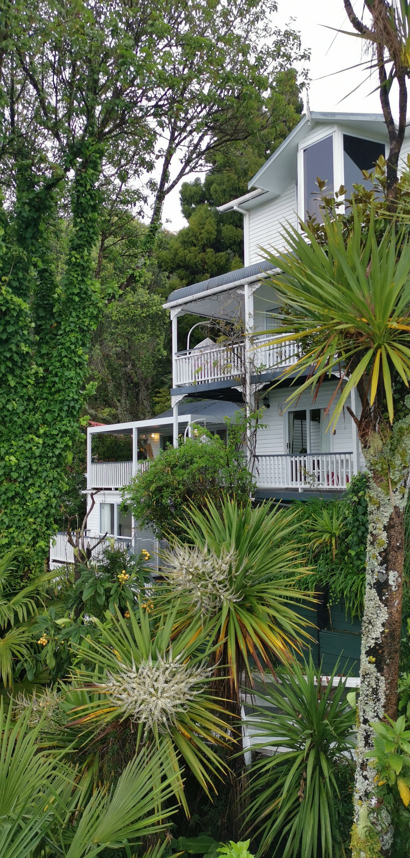 Das Guesthouse befindet sich auf einer Anhöhe mit wunderbaren Blick auf die Bay of Islands. Der Weg in unseren Spa-Room geht über so viele Stufen, dass wir auf das Ausladen unserer Koffer gerne verzichten und nur das Notwendigste mitnehmen.