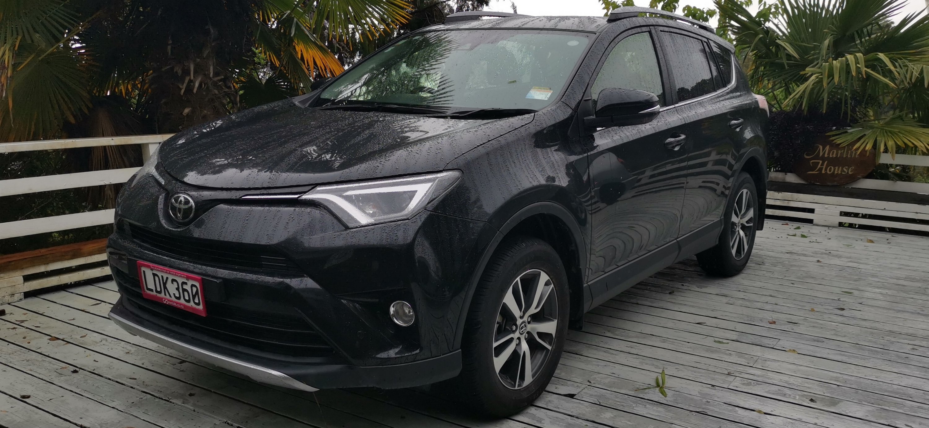 Um 10:30 Uhr holt uns ein Wagen ab und bringt uns zur Autovermietung GO rentals Auckland City. Hier ist bereits alles vorbereitet und so sind wir schnell durch. Führerschein und internationalen Führerschein scannen, Kreditkarte einlesen, Mietvertrag unterschreiben und Auto übernehmen – mit zusätzlichem Navi UND Schneeketten(!), falls wir in ein Skigebiet fahren sollten. Und 30 Minuten später verlassen wir mit einem schwarzen Toyota RAV4 die Garage. Es beginnt gerade leicht zu Regnen, 15°C.