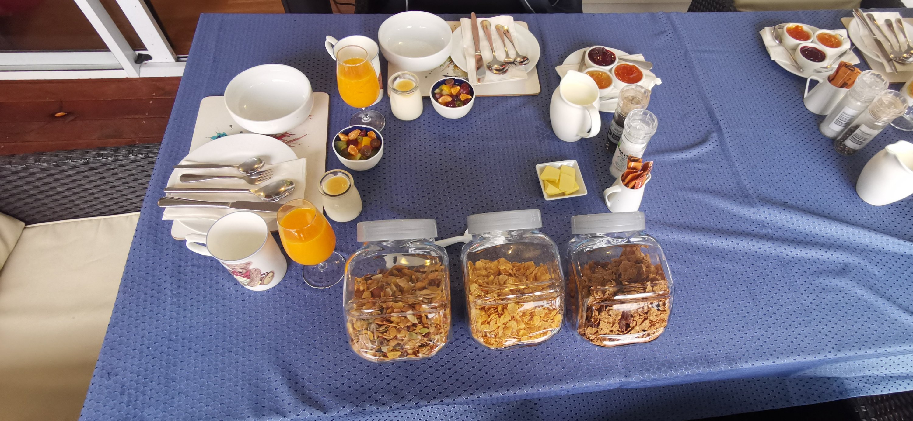 In der Nacht hat der Wind nachgelassen und es regnet nicht mehr. 16 °C. Das selbstgemachte, köstliche Frühstück wird uns auf der Terrasse serviert. Wir genießen den Blick auf das Meer und das Frühstück sehr, bevor es weiter geht.