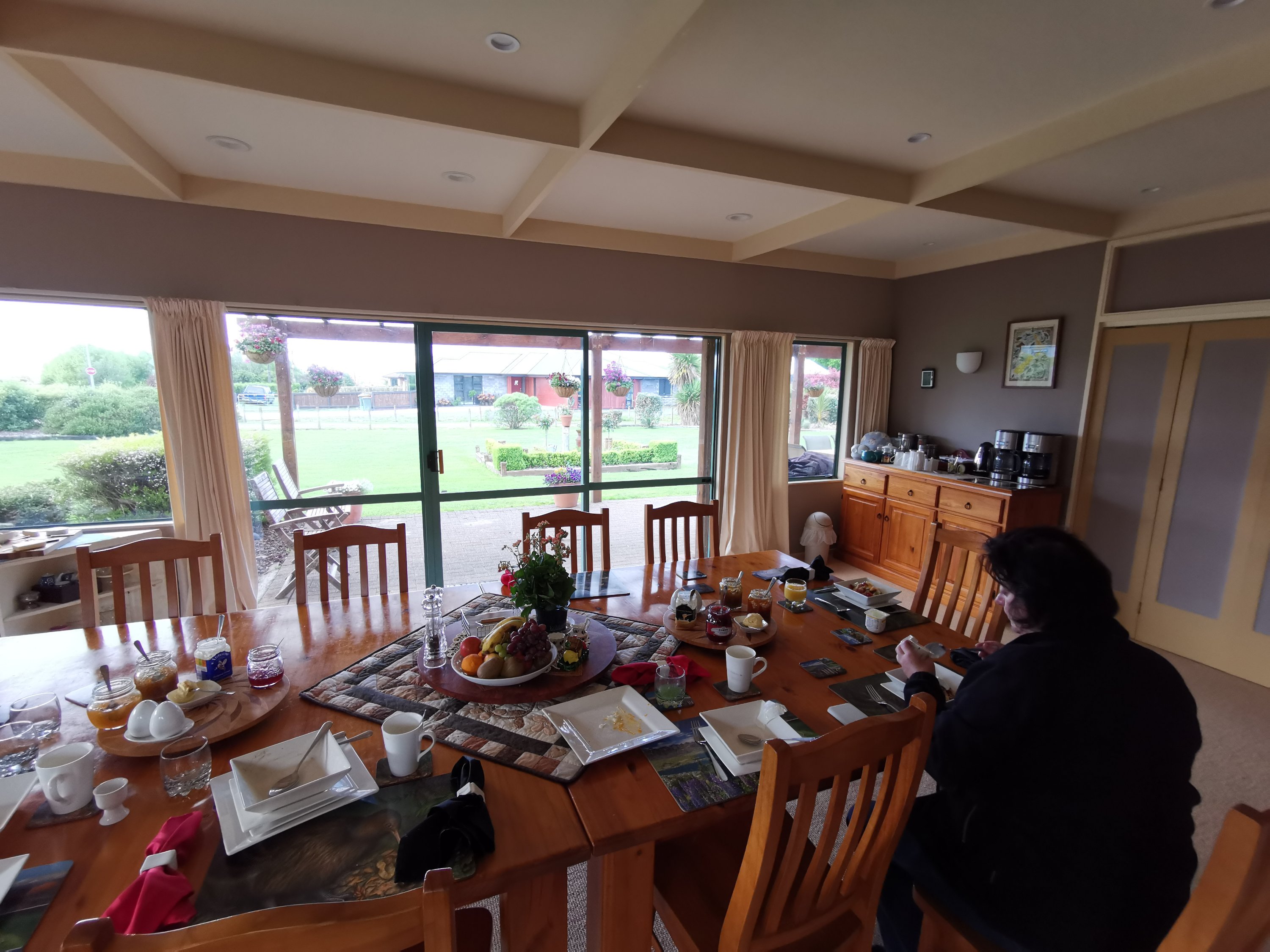 Wieder bekommen wir ein tolles selbstgemachtes Frühstück inklusive köstlichem Omlette. Unser Hausherr möchte – so wie schon unser letzter Gastgeber – alles über unsere Reise wissen. Er selbst plant nächstes Jahr gemeinsam mit seiner Frau eine länger Europareise inklusive Wienbesuch. Er gibt uns noch ein paar wertvolle Tipps für die Weiterfahrt und einen Gutschein für Te Puia mit. Bedingt durch die längere Unterhaltung beim Frühstück starten wir mit ein wenig Verspätung.
