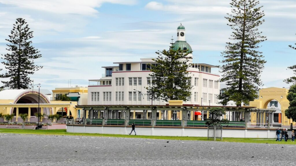 Am frühen Abend kehren wir nach Napier zurück und machen noch einen Stadtspaziergang mit Einkehr im berühmten Mesonic Art Deco Hotel.